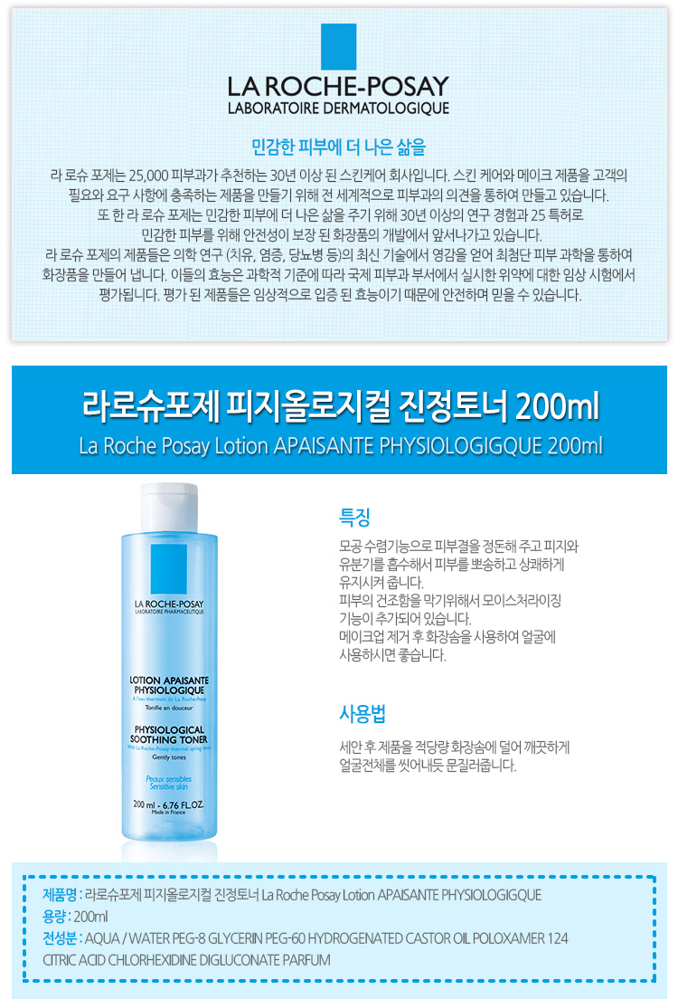 [해외] 라로슈포제 피지올로지컬 진정토너 200ml